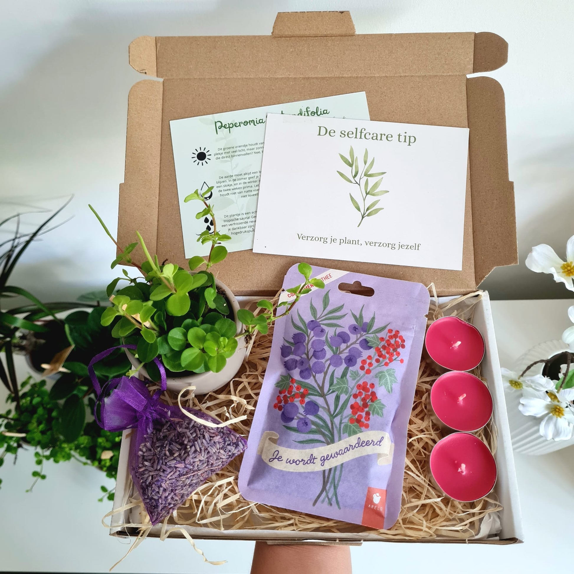 De Plantavida Selfcarebox Mini - Waardevol bevat een verzorgingskaart voor je plant en een inspirerende selfcare tip voor jou. Samen met thee, een notitieblokje en een vleugje ontspanning vormt dit een warm moment van zorg voor jezelf